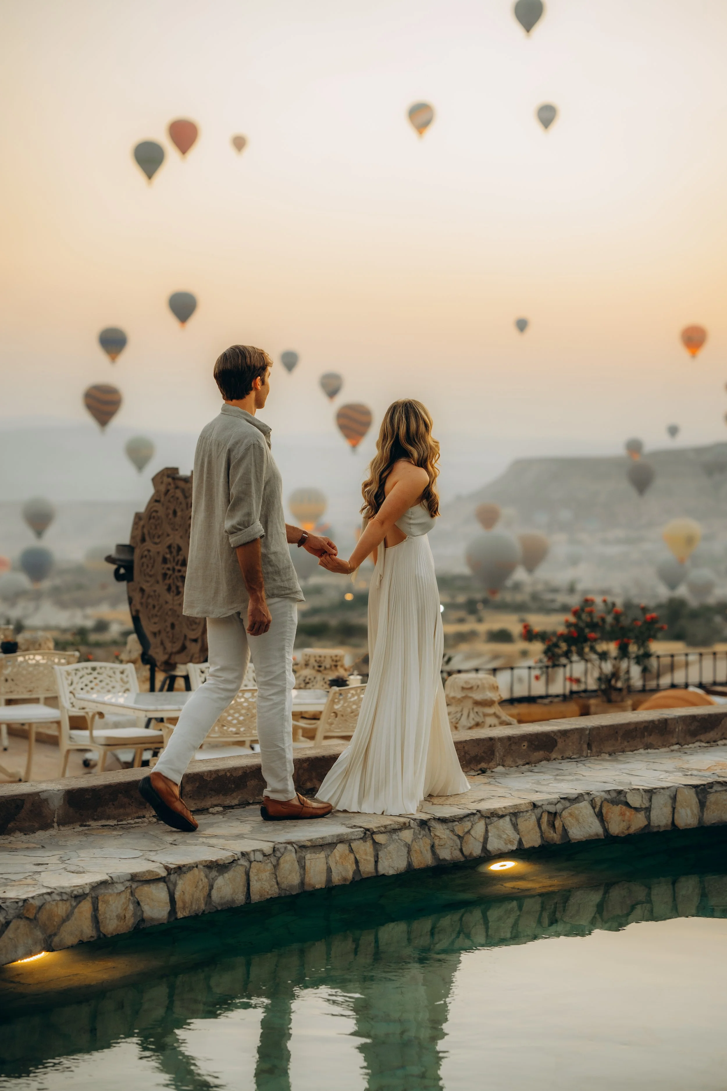 Together, Chloé and Bryan have traveled throughout the USA, UK, Greece, Portugal, Switzerland, Spain, France, Aruba, the Bahamas, Norway, Svalbard, and Turkey. In Cappadocia, Bryan proposed at sunrise as hot air balloons filled the sky, a fitting moment for two people who love nothing more than exploring the world together.